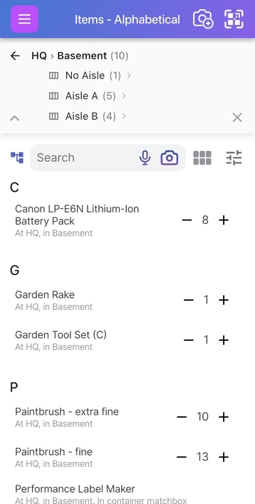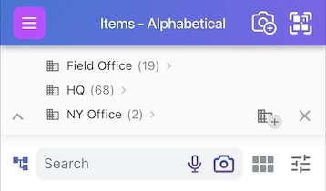 Say we tapped HQ, we'll see the items there, and it expands to show all locations within HQ: Basement, Closet, Front Office, etc.