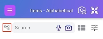 After accessing your items' list, click on the new Location icon exactly beside the items search bar: