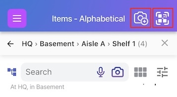 The QR button allows you to add items by scanning your Scanlily QR stickers and then taking photos or videos of them. Our AI will analyze the photos of videos and create a separate inventory entry for each item, with photo frames attached, in less than a minute!