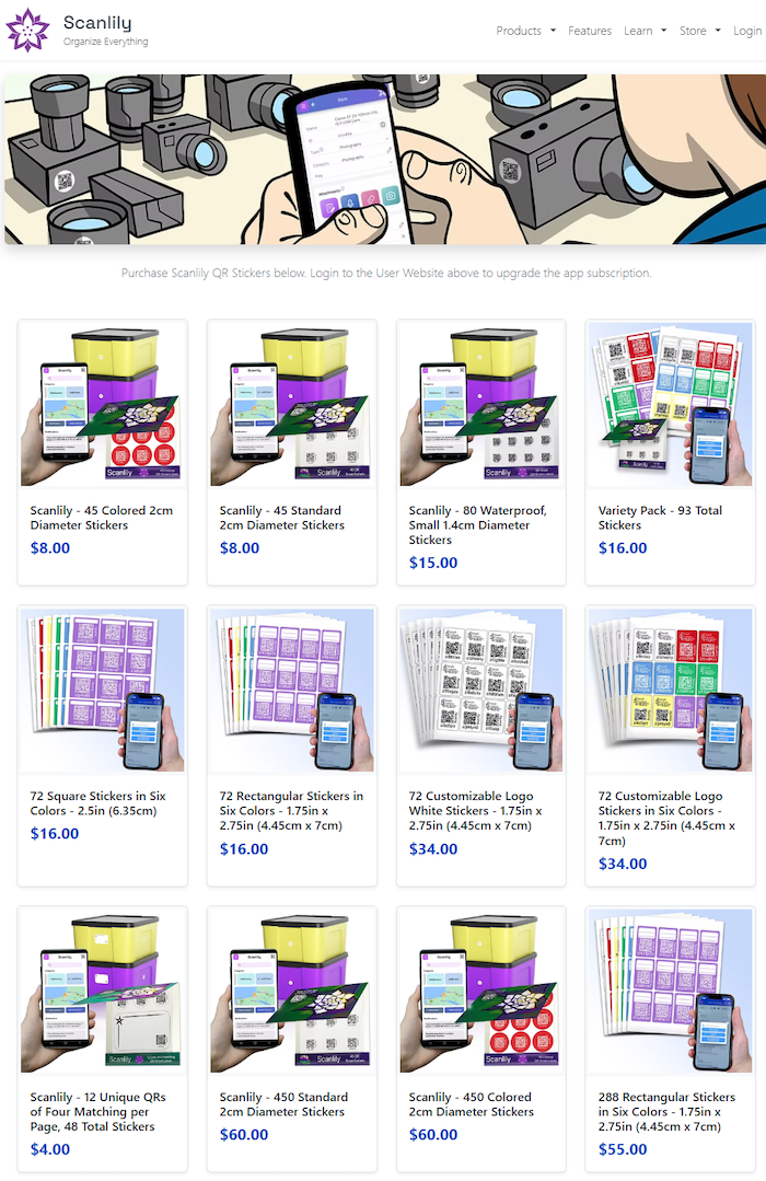 Head to the Scanlily Store here and get QR labels you’ll use to tag your items physically. You only need one QR label for each item, so with as little as $4, you can have 12 items protected: