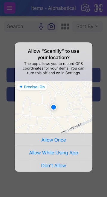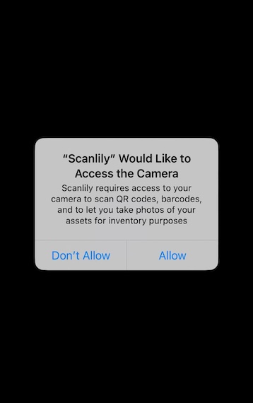After downloading the app, login to your Scanlily account and grant the app the necessary permissions to access your device camera for the next step.