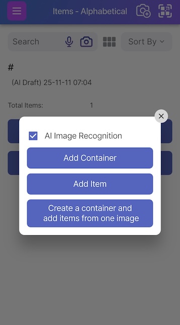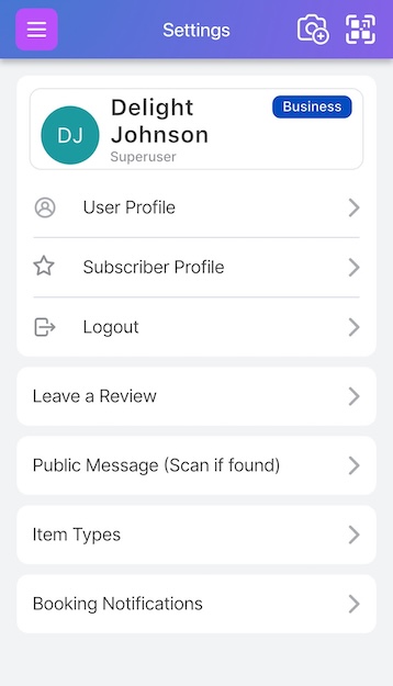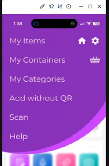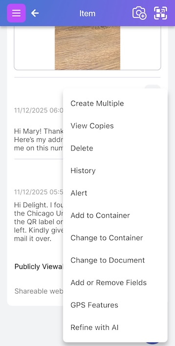 On the items page, click on the QR icon next to the ‘camera+’ icon to scan the QR label you want to attach to your item.