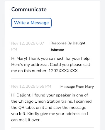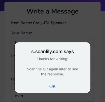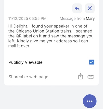 After a little while has passed and you’ve sent a response, the finder simply has to rescan the QR label once again and the messaging portal opens up with your response attached.