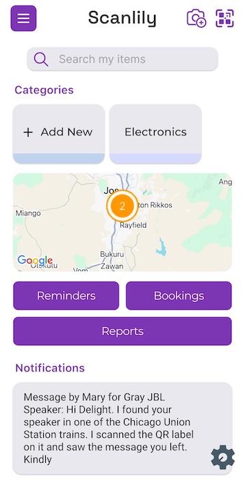 One of the most amazing features of Scanlily’s Lost & Found is that you can see the precise location of your item based on where it was scanned by the finder.