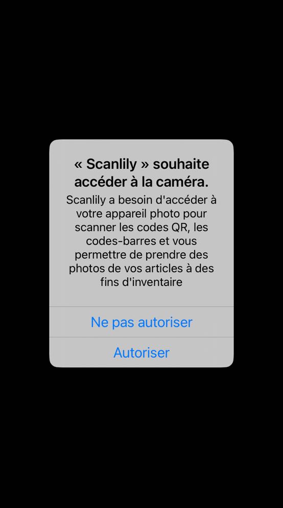 Après avoir téléchargé l'application, connectez-vous à votre compte Scanlily et accordez à l'application les autorisations nécessaires pour accéder à l'appareil photo de votre appareil pour l'étape suivante.