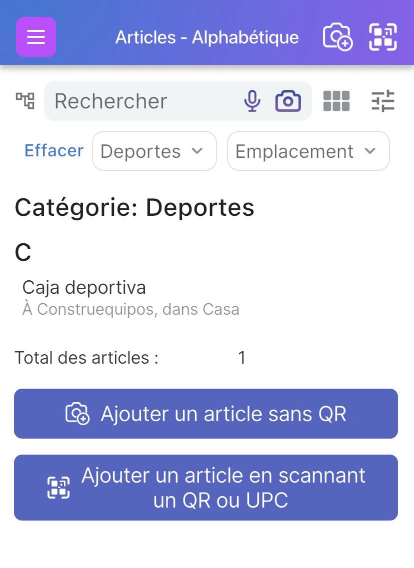 Vous pouvez également cliquer sur ‘Ajouter un article en scannant un QR ou un UPC’