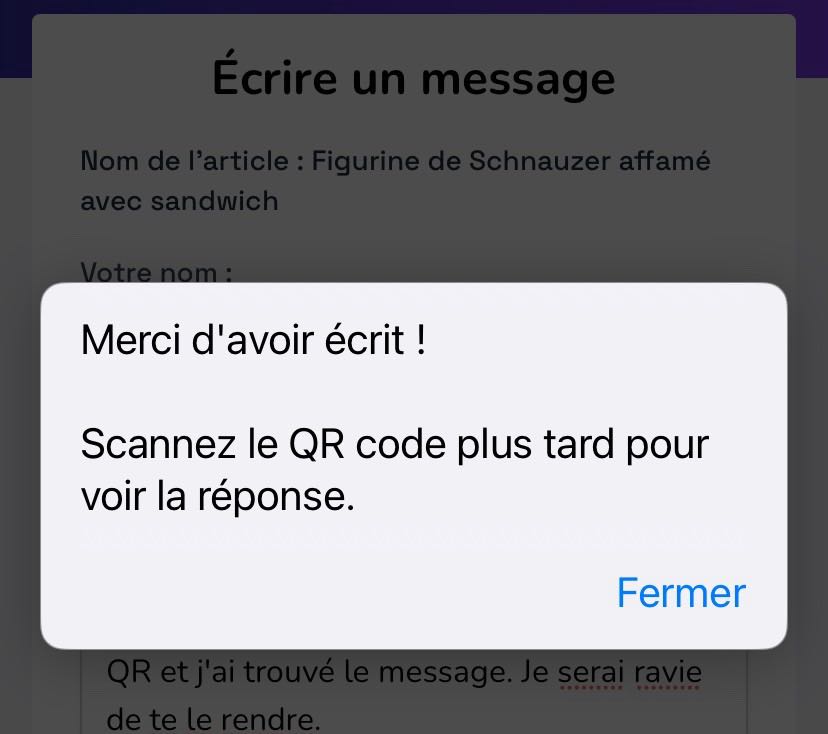 Le trouveur recevra une invite lui demandant de scanner à nouveau le code QR pour voir les messages que vous avez envoyés :