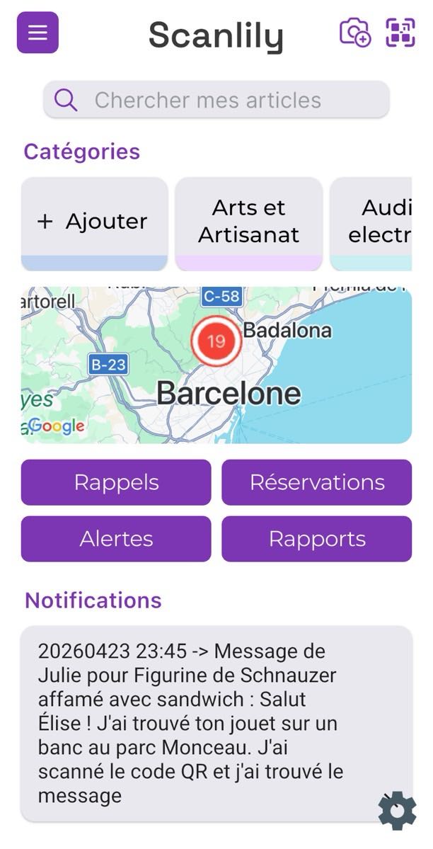 Pour faciliter encore plus le suivi, le trouveur peut décider de partager sa position GPS avec vous, et vous recevrez une notification instantanée dans votre application Scanlily vous indiquant où votre article a été trouvé !