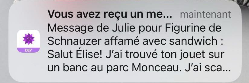 Dans votre application Scanlily, vous recevrez le message que le trouveur vous a envoyé, mais nous vous enverrons également un e-mail vous informant que vous avez reçu un nouveau message !